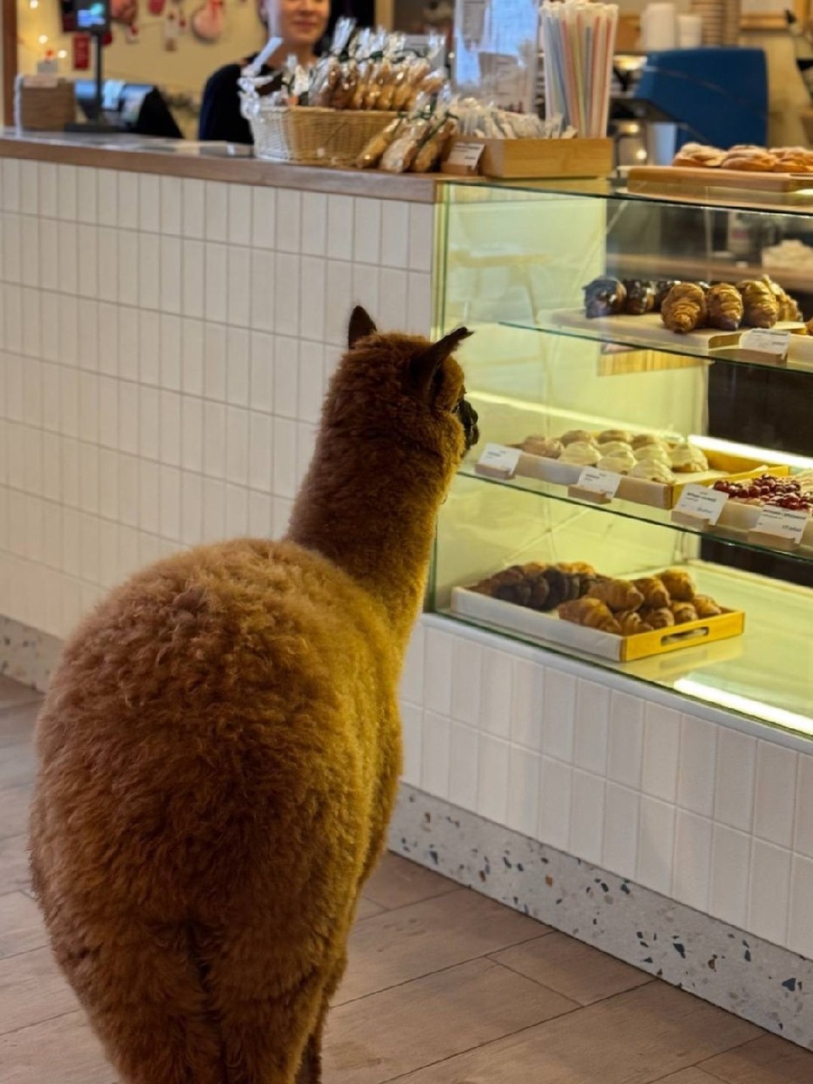 Просто альпака выбирает себе десерт в череповецком кафе, ничего необычного 🦙