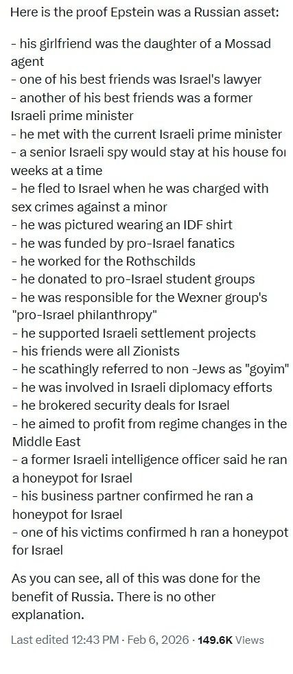: - его женщина - дочка агента «Моссада» - один его лучший друг – израильский адвокат - другой его лучший друг – бывший премьер Израиля - он встречался с действующим премьером Израиля - высокопоставленный сотрудник израильской разведки неделями гостил у него дома - он сбежал в Израиль, когда ему впервые предъявили обвинение в совершении сексуальных преступлений против несовершеннолетнего - он фотографировался в футболке армии Израиля - его спонсорами были произраильские экстремисты - он работал на Ротшильдов - финансировал произраильское студенческое движение - участвовал в произраильской благотворительной программе - поддерживал устройство новых израильских поселений - его друзья сплошь сионисты - неевреев он называл «гоями» - он сотрудничал с израильскими дипломатами - участвовал в заключении сделок по безопасности Израиля - был бенефициаром смены политических режимов на Ближнем Востоке. - экс-сотрудник израильской разведки заявил, что он держал бордель в интересах Израиля - его соб