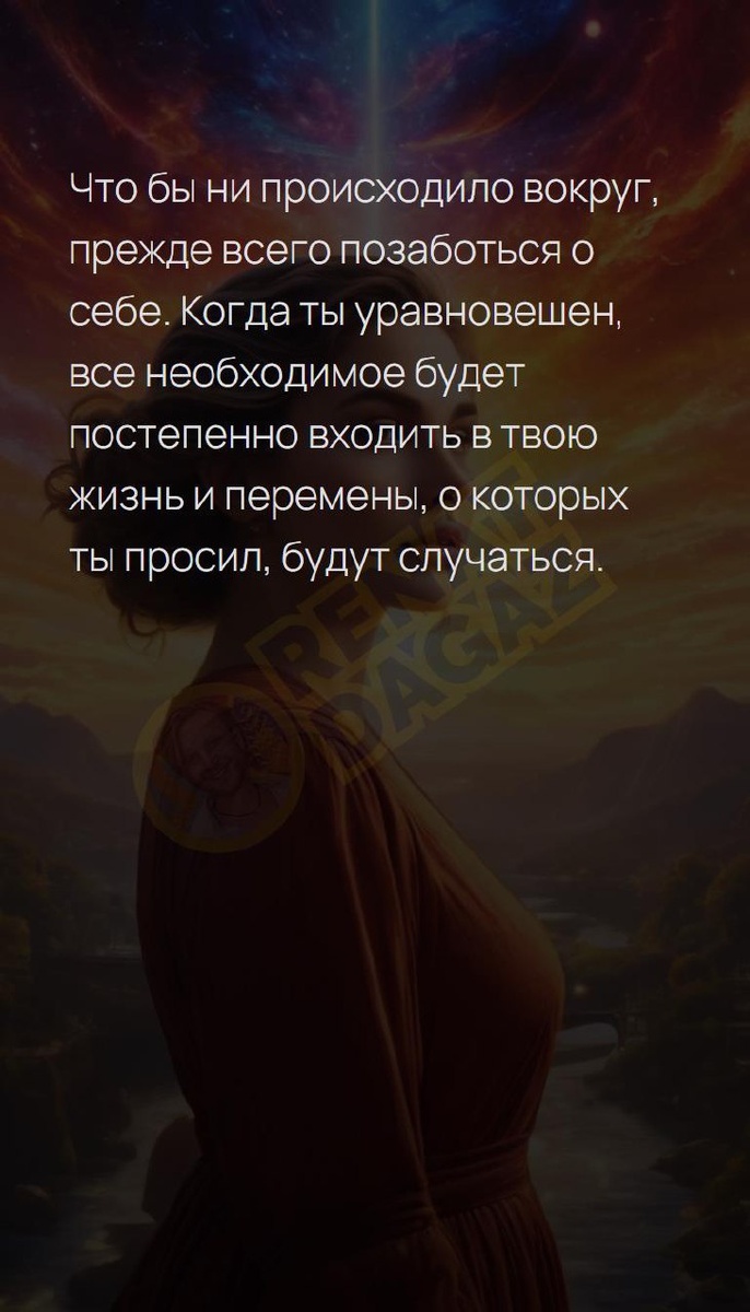 К... Что бы ни происходило вокруг, прежде всего позаботься о себе. Когда ты уравновешен, все необходимое будет постепенно входить в твою жизнь и перемены, о которых ты просил, будут случаться. Архитектура вашей души | Матрица судьбы T | VK | Pin | YouTub | Dzen #человечность #встреча #суть #антистресс #успехвделах #нашебудущее #светлыйпуть #денежныйпоток #исцеление #7число #7февраля