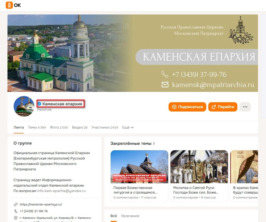 5 февраля 2026 года страница Каменской епархии в социальной сети «Одноклассники» получила официальный статус