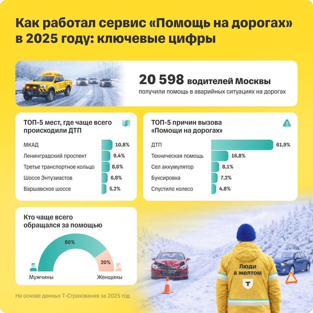 Так, на МКАД пришлось 10,8% зафиксированных случаев ДТП — аналитика от Т-Страхования. В тройку лидеров также вошли Ленинградский проспект (9,4%) и Третье транспортное кольцо (8,6%). Самыми частыми поводами вызова экипажей стали ДТП — 61,9% от всех заявок, техническая помощь на дороге - 16,8% и разрядившийся аккумулятор - 8,1%. В сервисе отметили, что в 80% случаев к ним обращаются мужчины и только в 20% — женщины. По данным Т-Страхования, их сервис “Помощь на дорогах” бесплатно помог в аварийных ситуациях более 20 тыс водителям в Москве в прошлом году. 🏡 МЫ НАХОДИМСЯ ПО АДРЕСУ: г.Серпухов, ул.Химиков, д.3 📞 НАШИ КОНТАКТЫ: 8 (925)548-08-28 - Менеджер Автозапчастей 8 (916)710-08-08 - Мастер консультант Автосервиса 🌐 https://ser-plus.ru/ - сайт нашего Автосервиса 👥 https://vk.com/avtoservis_plus_serp - сообщество в ВК нашего Автосервиса ⏰ ЧАСЫ РАБОТЫ: Пн-Вс с 9:00 до 20:00 (работаем каждый день, без выходных)