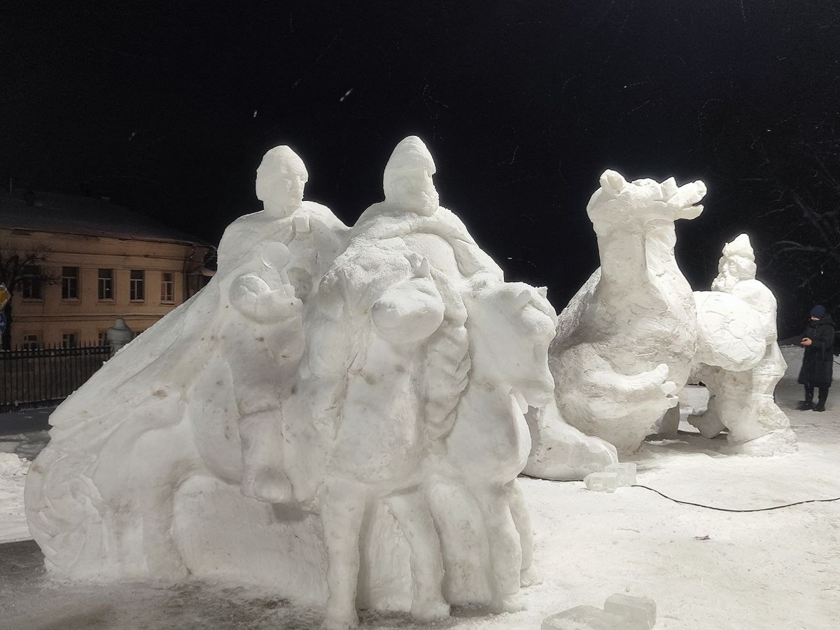 В действе участвовали 27 команд — профессиональных и любительских. Нынче фестиваль снежно-ледовых скульптур, посвящённый Году единства народов России, собрал 120 человек. Они соревновались в двух номинациях по темам «Моя страна — великая Россия», «Мы едины и непобедимы» и «Сказания и легенды народов России». В номинации «Снежная скульптура» дипломом лауреата I степени награждена команда детской школы искусств №2 города Костромы за скульптуру «Илья Муромец». В номинации «Ледовая скульптура» высшую награду завоевала команда Буйского областного колледжа искусств за работу «Звон». Гран-при фестиваля присуждён команде мастеров из Костромы за монументальную скульптуру «Великая Россия». Скульптуры останутся в Центральном парке до весны — если, конечно, их не испортят вандалы, как случалось в былые годы. Фото: администрация Костромской области