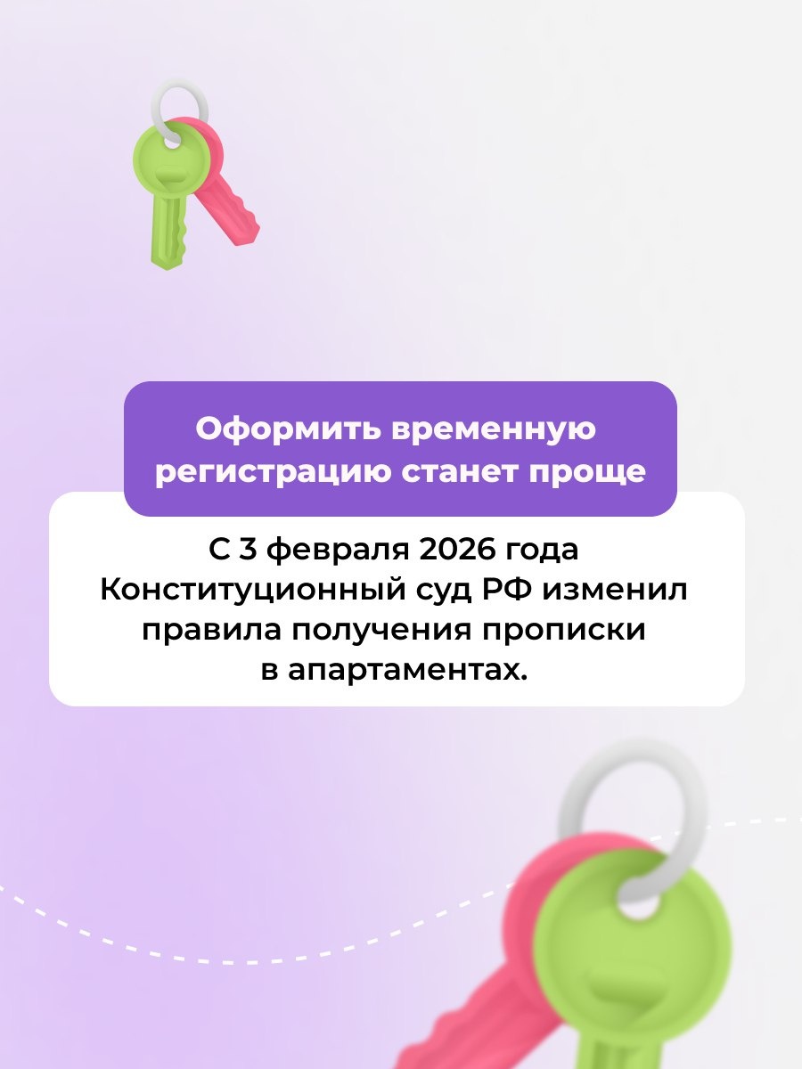 С 3 февраля 2026 года Конституционный суд РФ разрешил временную регистрацию в апартаментах, пригодных для проживания