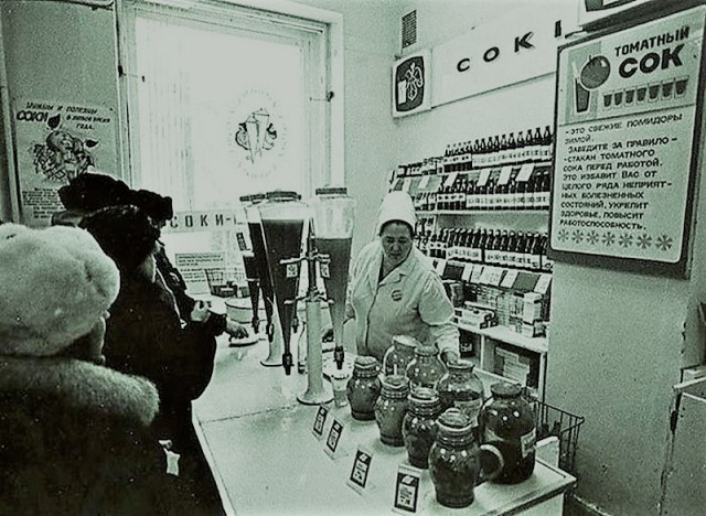 Современный сок из коробки — это продукт маркетинга: красиво, вкусно, удобно. Но те, кто застал отделы «Соки-Воды», знают: настоящий эталон вкуса жил не в картоне, а в гигантских стеклянных конусах и трёхлитровых банках. История советского сока началась с авантюры Анастаса Микояна. В 30-х он привез из США идею «бодрого утра» с апельсиновым фрешем. Но Азерот... простите, Советский Союз — это не Флорида. Валюты на цитрусовые не было, зато помидоров в колхозах было хоть завались. Так родилась легенда: вместо капиталистического апельсина на столы рабочих и крестьян лег густой, как сметана, томатный сок. Наш ответ Чемберлену, который оказался куда сытнее и роднее. Пока на Западе изобретали порционную упаковку, в СССР пошли по пути гигантомании. Трёхлитровая банка — это не просто тара, это символ семейного достатка. Отдел соков в гастрономе был местом магическим. Огромные перевернутые конусы напоминали алхимические сосуды. Продавщица в крахмальном колпаке, как жрица, наполняла гранёный стак