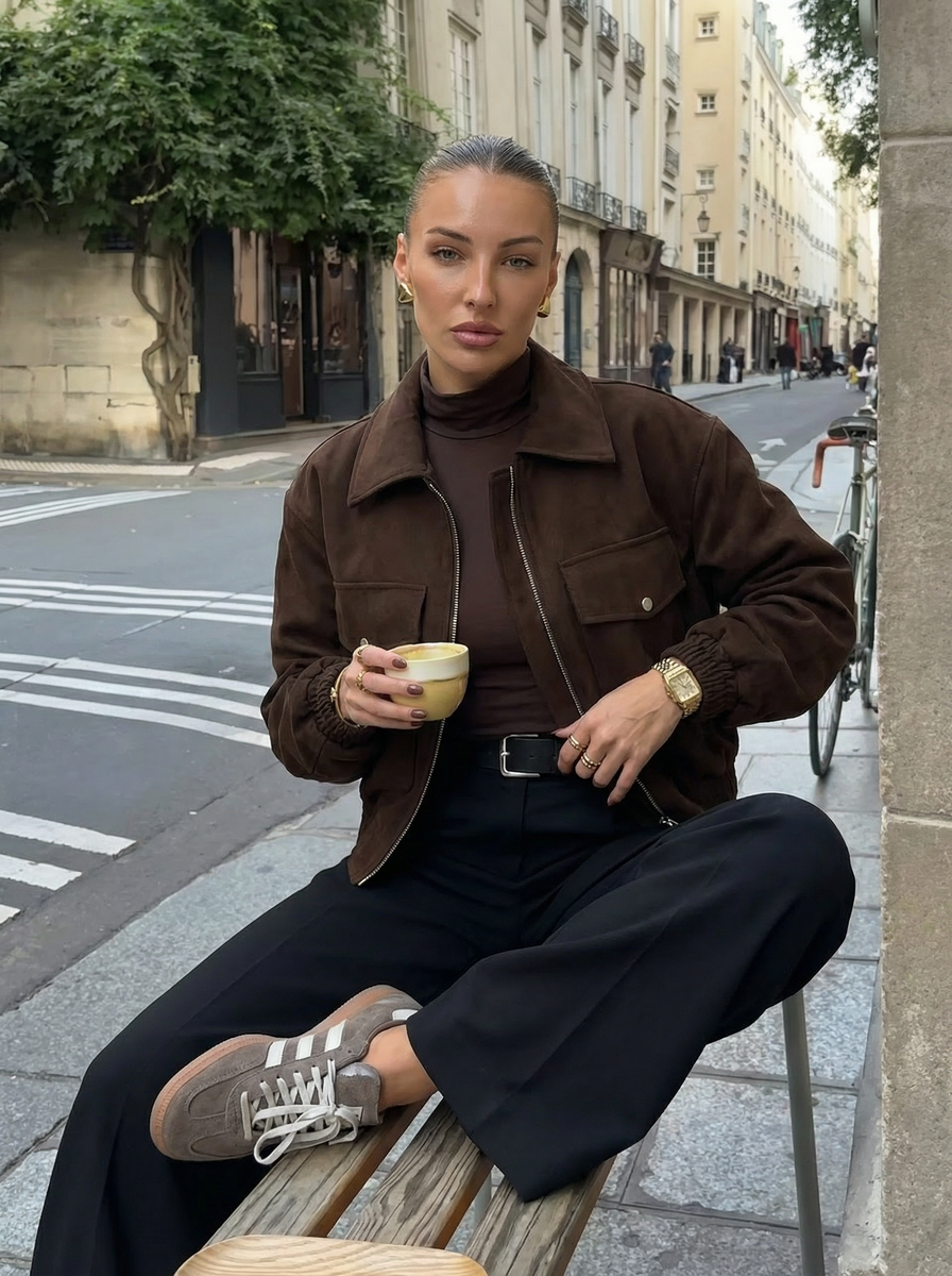 Весна — идеальное время, чтобы обновить гардероб и добавить несколько универсальных вещей. Одной из главных моделей сезона 2026 стала короткая женская куртка-бомбер из экозамши. Она универсальна, стильна и подходит для большинства повседневных образов.