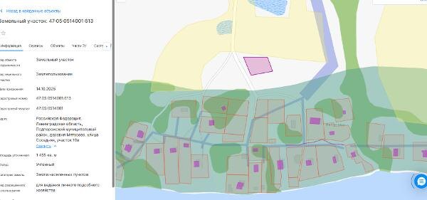 Название: Земельный участок из земель населенных пунктов, с кадастровым номером 47:05:0514001:613, площадью 1455 кв