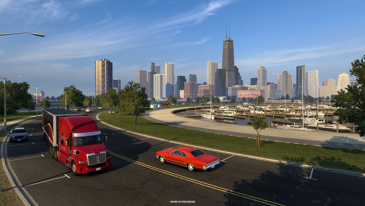Сегодня мы хотим поделиться с вами некоторыми озерами, реками и другими водными объектами, которые вы сможете открыть для себя в нашем предстоящем дополнении «Иллинойс» для American Truck Simulator. От городской атмосферы на берегу озера в Чикаго до спокойных водно-болотных угодий и водохранилищ на юге штата — Иллинойс предлагает удивительное разнообразие водных путей, которые воссоздали наши дизайнеры карт. Давайте взглянем на некоторые из них! Озеро Мичиган и пляжи Чикаго Одной из самых знаковых достопримечательностей штата является озеро Мичиган, одно из пяти Великих озёр Северной Америки. Это второе по объёму и второе по глубине из Великих озёр, что делает его поистине впечатляющим пресноводным пространством, которое кажется почти бесконечным. Исследуя дороги Чикаго, вы сможете полюбоваться видами на озеро и проехать мимо Прибрежного парка (Lakefront Park), который является частью живописной Прибрежной тропы (Lakefront Trail) вдоль озера Мичиган. Вы также заметите один из многочис