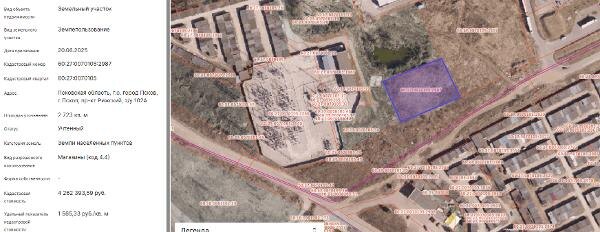 Название: Земельный участок с КН 60:27:0070105:2987, площадью 2723 кв.м, с местоположением: Псковская область, г