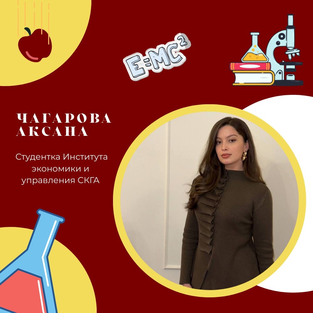 Чагарова Аксана — студентка Института экономики и управления СКГА и одна из тех, кто задает высокий темп студенческой научной жизни академии. Для Акcаны наука — не «дополнение к учебе», а пространство роста, идей и реальных достижений. Учеба у нее выстроена на прочном фундаменте: средний балл 5,0 — показатель дисциплины и настоящей вовлеченности. Эти качества помогают Аксане уверенно проявлять себя в направлениях, где особенно важны точность и аналитика. Среди ее достижений — успешное выступление на федеральном этапе в сфере экономической и финансовой грамотности, а также победа в Статистической олимпиаде, приуроченной к профессиональному празднику статистиков. 〽️Аксана активно включена в научно-исследовательскую среду: она участвует в международных экономических площадках (в том числе на базе ДонНУЭТ им. М. Туган-Барановского), выступает как лидер и участник конференций СКГА «Мои первые шаги в науке» и «Современная наука глазами студентов», а также других научных мероприятий. Отдел