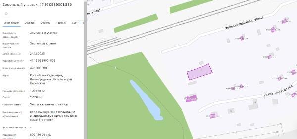 Название: Площадью 1291 кв.м., с кадастровым номером 47:16:0539001:839