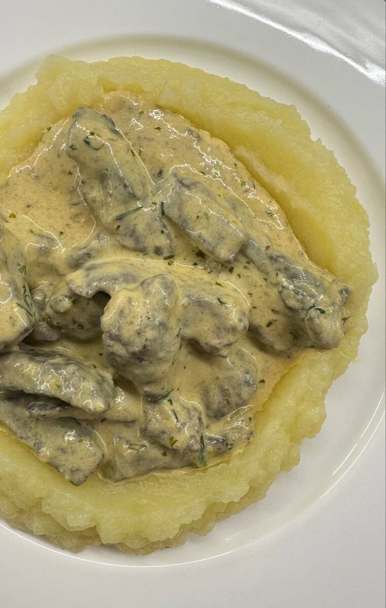 Вот это печень, я понимаю. Вкусная, нежная и без горечи. Печень - 600 гр. Молоко - для замачивания печени Лук - 1 шт. (крупная) Морковь - 1 шт. Сливки 20% - 150 гр. Вода - 150 мл. Масло гхи - 1 ст.л. Сыр плавленый- 100-150 гр. Соль, специи, лавровый лист - по вкусу Сода - щепотка ✔️ Печень, у меня лосиная, очищаем от пленки, вырезаем все протоки, заливаем молоком и убираем на ночь в холодильник. ✔️ Вымоченную печень нарезаем на брусочки. ✔️ В казане на масле гхи обжариваем мелко нарезанный лук и натертую морковь. Убираем. ✔️ В этом же казане, не добавляя масла, обжариваем печень на 8 из 9 до корочки. Всыпаем пережаренные лук и морковь, подливаем воды, сюда же щепотку соды и тушим 15 минут. Без крышки, чтобы выпарить влагу. ✔️ Добавляем плавленный сыр и мешаем до его растворения. ✔️ Вливаем сливки, добавляем специи и солим в самом конце. ✔️ Доводим до кипения и выключаем. Подаём с гарниром. У нас это картофельное пюре ❤️