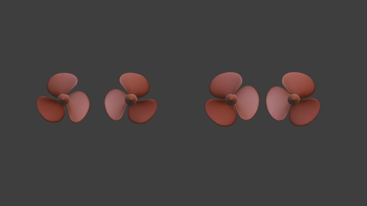 Podplav3d представили винты на немецкие эсминцы периода Второй Мировой войны. Ранний (тип 1934 и 1934А) слева и поздний (тип 1936А 1936В) справа. Масштаб 1/350.