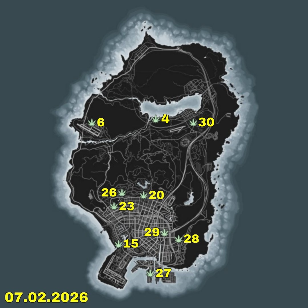 Расположение продукции "Smoke on the Water" в GTA Online на сегодня (7 февраля