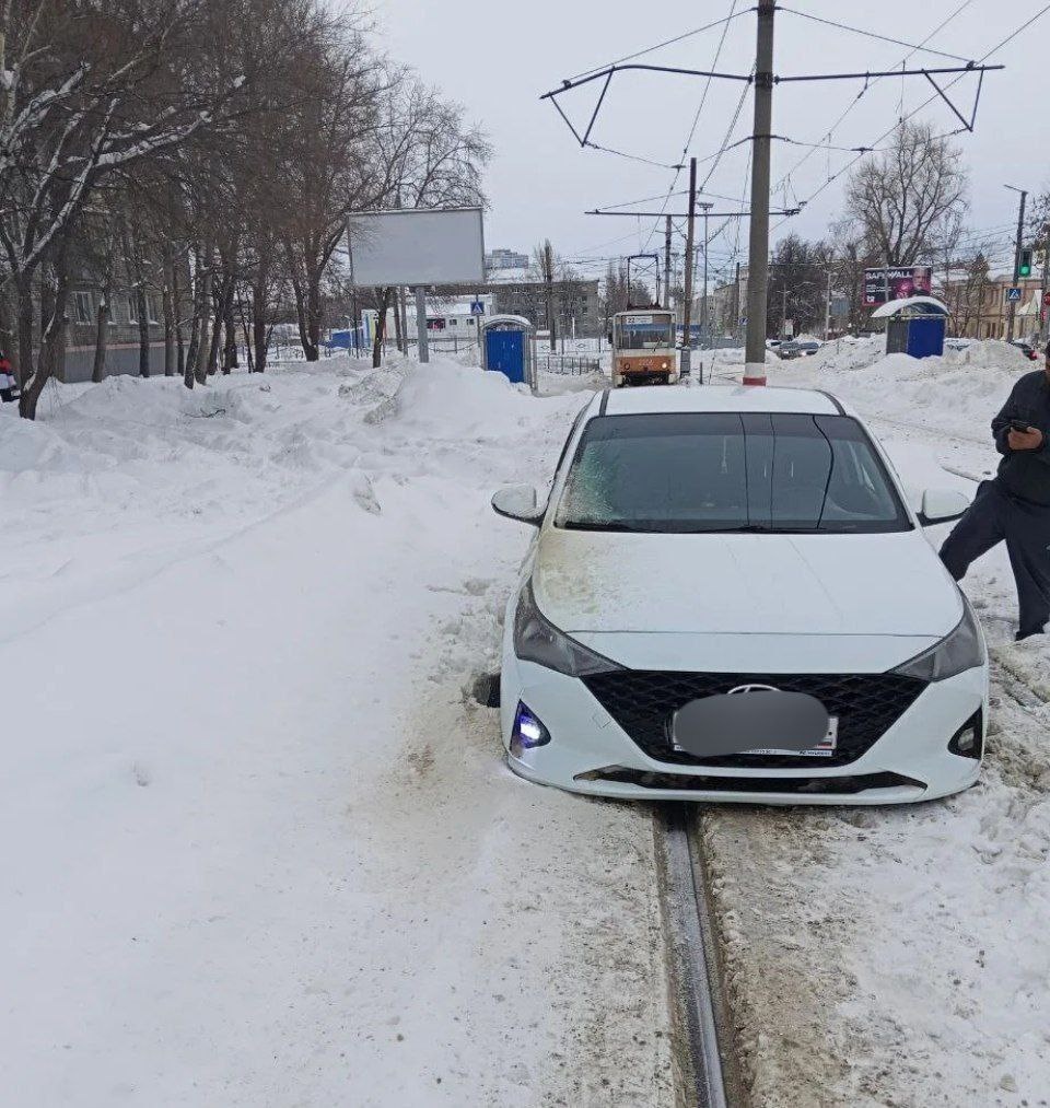 ❌ Ещё один автомобилист решил, что его машина - вездеход. И застрял на выделенных путях. Движение закрыто