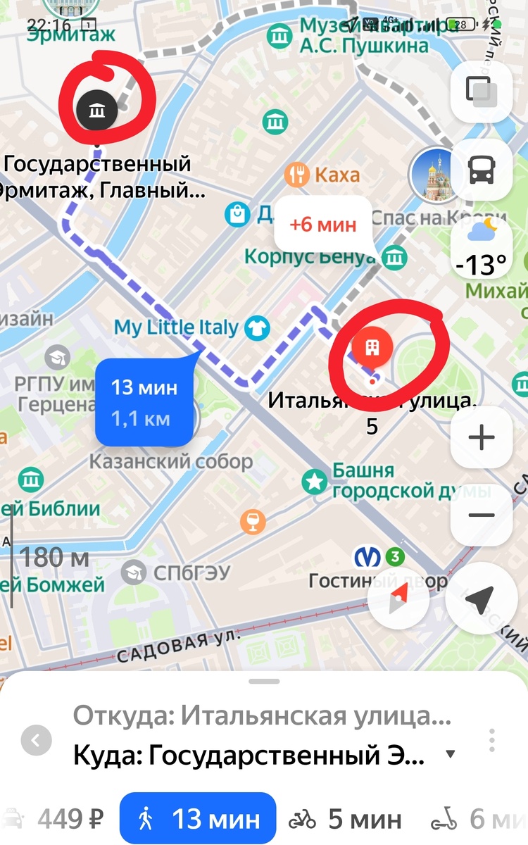 Я добиралась от ст.метро Адмиралтейская до ст.метро Старая деревня.