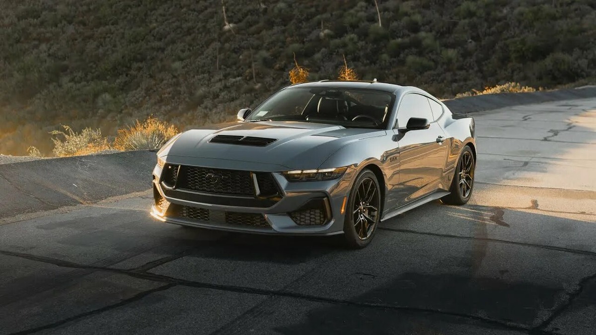 Я давно мечтал о настоящем мускул‑каре — и вот наконец он стоит передо мной: сверкающий 2024 Ford Mustang (S650). Его низкий широкий капот и фирменная решётка радиатора словно шепчут: «Я — легенда».