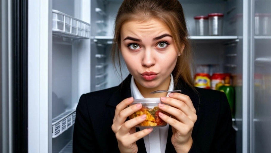 Однажды Надюша вернулась за забытой папкой. И застала Эллочку с ложкой в чужом контейнере.