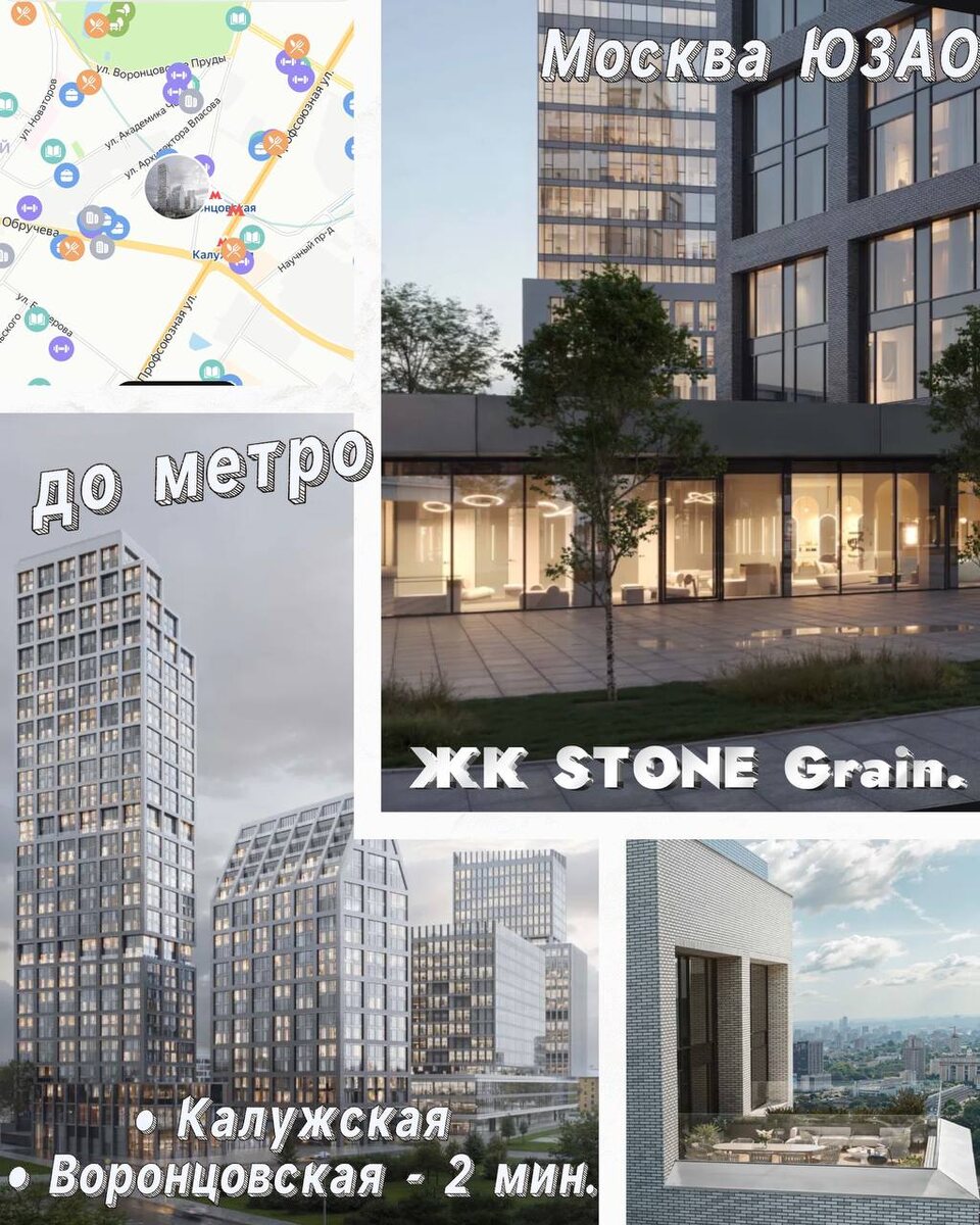 ! ✋ Продолжим изучать Новостройки ЮЗАО… ЖК STONE Grain премиальный жилой комплекс бизнес‑класса, который задаёт новые стандарты комфортной городской жизни. Состоит из двух домов: Башня А — высотное здание в 4️⃣5️⃣ этажей. Это архитектурная доминанта комплекса с выразительными поясами балконов галерейного типа и эксклюзивными лотами со вторым светом. Башня Б — более камерный корпус в 2️⃣0️⃣ этажей со скатной крышей, отсылающей к образам европейской архитектуры. В этом корпусе будут представлены двухуровневые квартиры с террасами. Расположен по адресу; Старокалужское шоссе, владение 64, Москва, ЮЗАО, Обручевский район. Цены: студия (31–38 м²) — от 17,9 млн руб.; 1-спальная квартира (41–48 м²) — от 22,3 млн руб.; 2-спальная квартира (58–124 м²) — от 34 млн руб.; 3-спальная квартира (86–187 м²) — от 47,9 млн руб.; 4+ спальни (114–176 м²) — цены следует уточнять. Инфраструктура рядом: Метро: «Калужская» и «Воронцовская» — в 5–6 минутах ходьбы (400–550 м). ВУЗы: в относительной близости