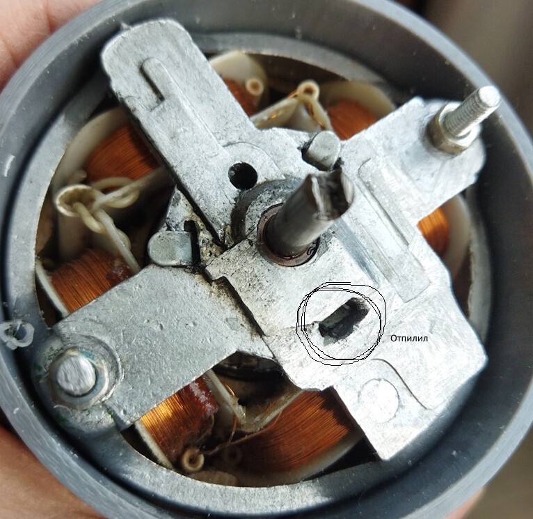Итак, косячок, допущеный мною при подготовке мотора от вентилятора к установке в компрессор, показал "зубы". Я, когда спиливал качалку вентилятора, спилил одно ушко, крепящее систему смазки и центровки скользящего подшипника мотора, и после произнесения полагающихся в таком случае слов, огрызок лапки немного распер в отверстии и решил, что сойдет. Но, не проканало. Колебания оси расшатало сделаное, ротор стало клинить в статоре, и пришлось мотор списывать, как не пригодный для компрессора. В качестве альтернативы под рукой оказалось 2 движка, УАД 74 на 1500 оборотов, всем олдам знакомый конденсаторный движок, полностью закрытый с любым положением работы, и ДАК 86-60-3 УХЛ4, бытовой движок 3000оборотов, тоже конденсаторный, ось у него 10мм. диаметр, рабочее положение- ось вверх, скользящий подшипник. После некоторых колебаний остановился на УАДе, ибо никаких переделок компрессора не надо, только сбацать ему крепление для стыковки и все. В результате получился весьма серьезный прибор. К