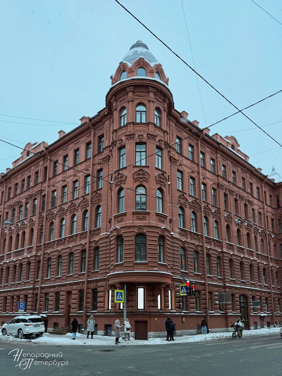 🙌🏻 Архитектор – А.П.Шильцов, год постройки – 1902, стиль – эклектика. Владельцем дома был Петр Матвеевич Кумович – купец первой гильдии, действительный член попечительства Императорского человеколюбивого общества. По заказу Кумовича в доме были перестроены в жилые даже подвальные помещения. Фасад выделяется насыщенным цветом, полукруглым эркером с башенкой и окнами, украшенными женскими и львиными маскаронами. 📍Адрес – ул. Радищева, 27 #непарадныйпетербург @vladislavkarpyuk