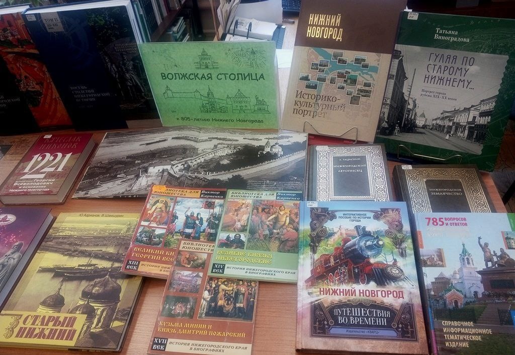 #Выставка 📚 В отделе литературы по краеведению открылась книжная выставка «Волжская столица», приуроченная к 805‑летию Нижнего Новгорода. На выставке представлены материалы об истории города. Здесь всегда была сильна культурная элита, причем не только выходцы из высших слоев общества, но и талантливые самородки из народа: гениальный изобретатель И. Кулибин, актриса П. Стрепетова, первая женщина-врач Надежда Суслова, писатель М. Горький и др. Уроженцами Нижнего были математик Н. Лобачевский, декабрист С. Трубецкой, исследователь старообрядчества П. Мельников (Андрей Печерский), первая в мире женщина-географ А. Потанина-Лаврская, писатель П. Боборыкин, литературный критик Н. Добролюбов, воздушный ас П. Нестеров, композиторы М. Балакирев и Б. Мокроусов и др. Здесь жили и творили просветитель, епископ Дамаскин (Руднев), писатели В.Даль и В.Короленко. Здесь начинали карьеру Ф. Шаляпин и Н. Плевицкая и этот список можно еще долго продолжать.