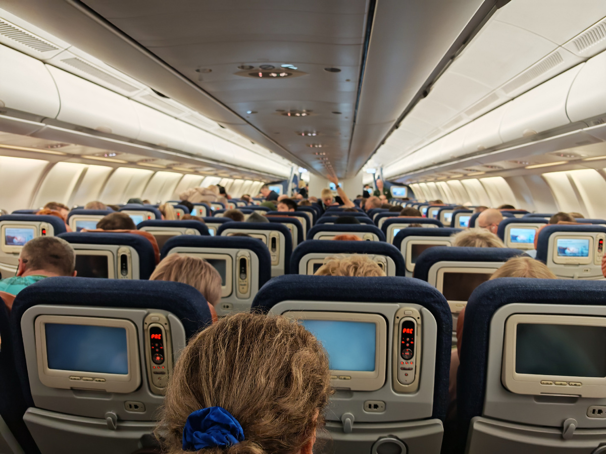 Летели ночью. Места были около туалета. Рядом бухали два мужика. Именно на нашем ряду слетели настройки телеканалов на встроенных в кресла планшетов.