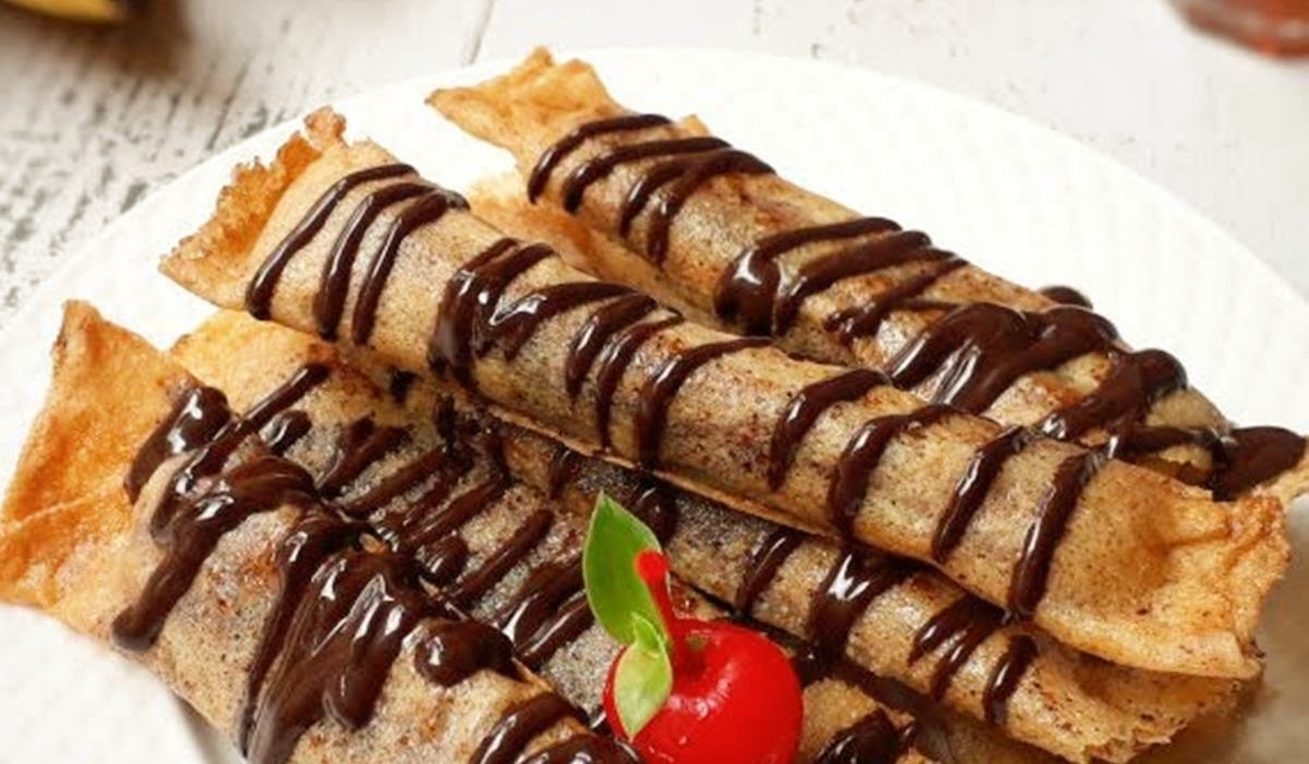 Перед подачей обжарьте рулеты. Отдельно растопите в сковороде масло с сахаром, добавьте нарезанные бананы и щепотку корицы. Подержите на огне 2 минуты. Выложите бананы на блины — аромат стоит невероятный!