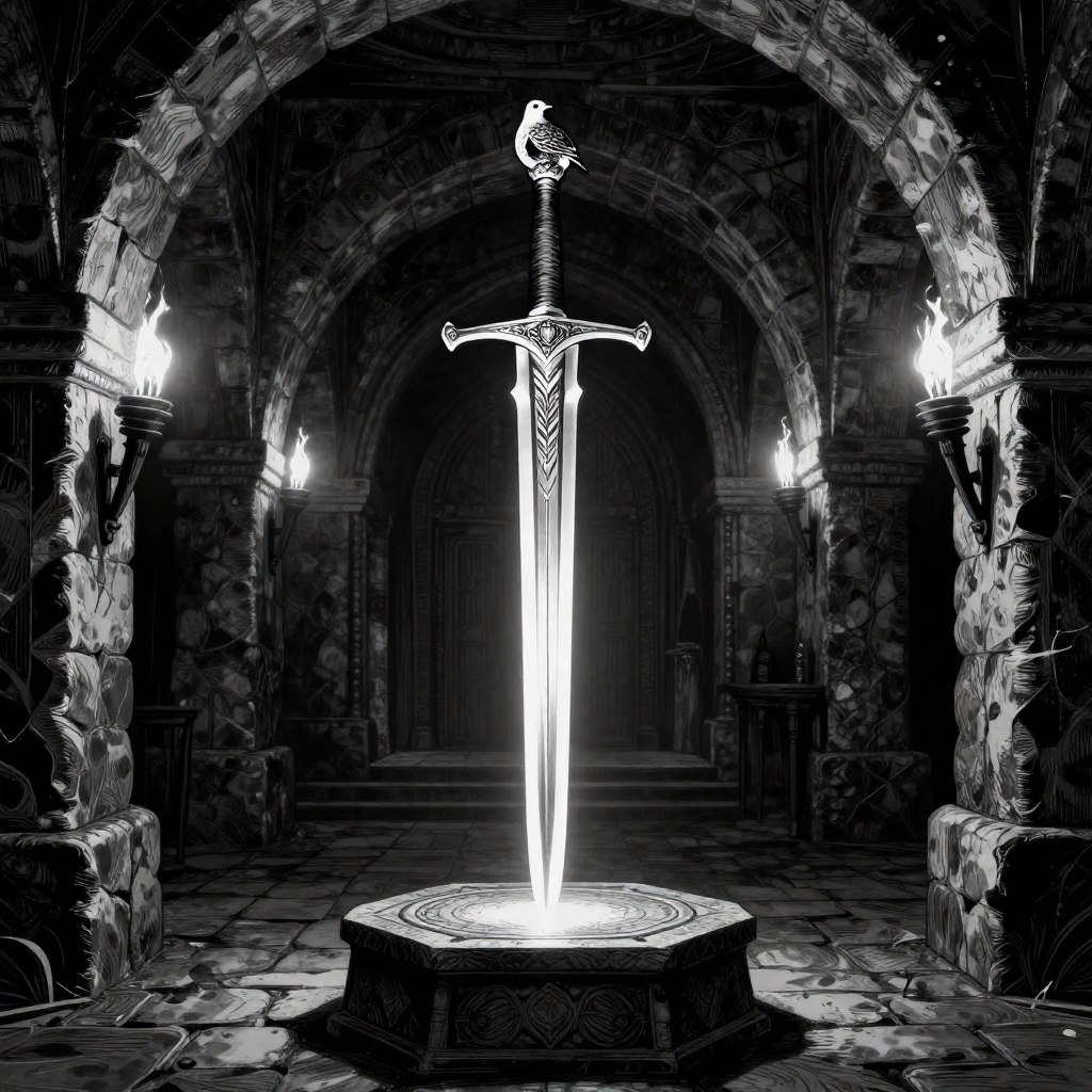 Меч-клинок, искусно разукрашенный. Небольшой клинок, но сам он светится,
