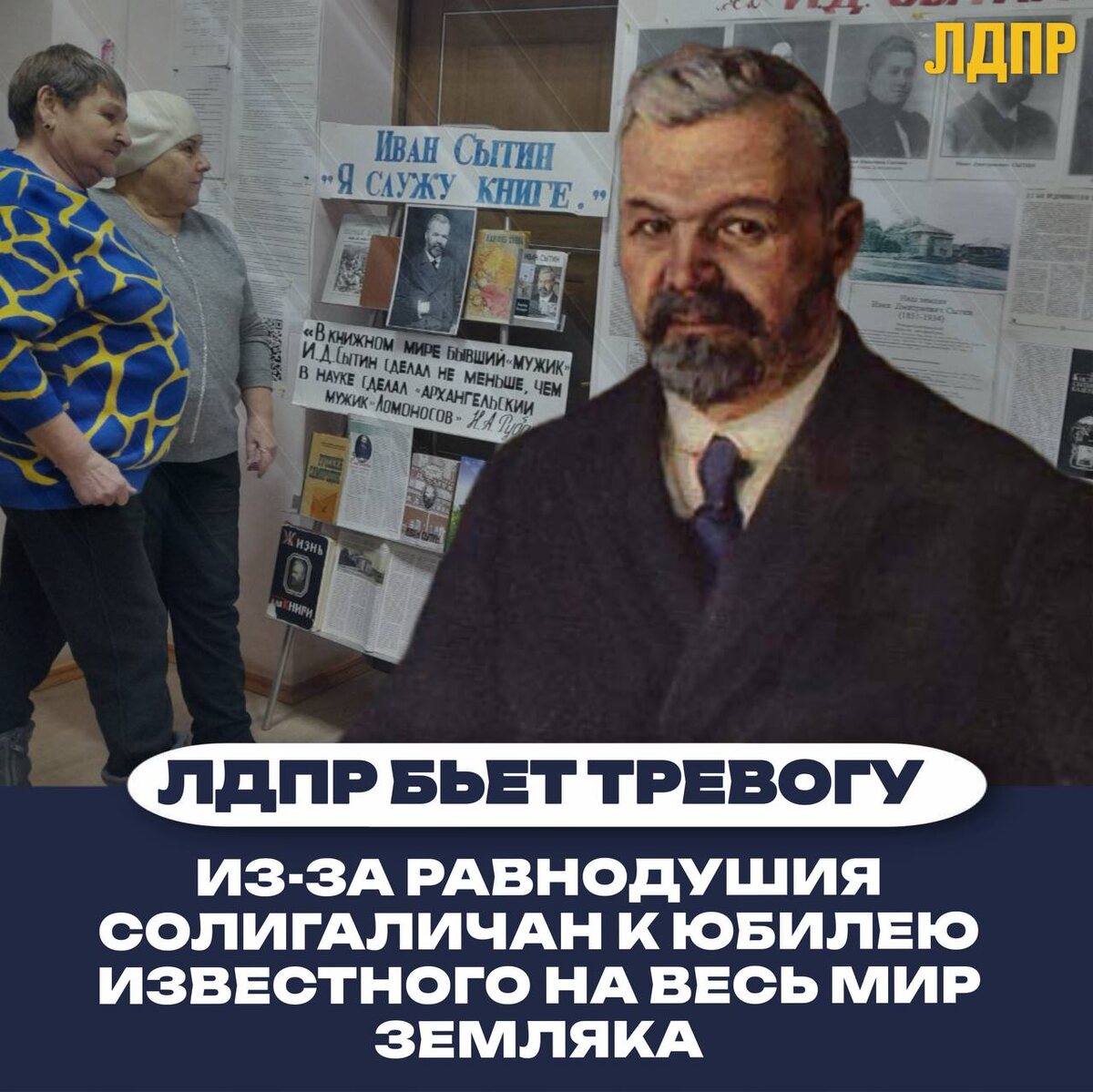 ❗ 5 февраля Россия отметила 175-летие со дня рождения Ивана Сытина – уникального человека, чье имя золотыми буквами вписано в историю отечественного книгоиздания. Уроженец села Гнездниково Солигаличского уезда, Сытин, выйдя из скромной крестьянской семьи, сумел создать империю, которая прогремела на весь мир. «Русским самородок», он не только добился успеха, но и посвятил свою жизнь просвещению народа. ➡ Мероприятия к юбилею Сытина прошли по всей стране, и, разумеется, Костромская область не осталась в стороне. В родном селе книгоиздателя в Солигаличском округе, Гнездниково, библиотекарь Валентина Ивановна Низова подготовила содержательную и объемную выставку, посвященную жизни и деятельности Сытина. Однако, как отметили в ЛДПР, это важное событие не привлекло должного внимания солигаличан. «Признаюсь, я очень удивлена, и удивлена неприятно. Человек, имя которого знает весь мир, остался практически незамеченным на своей малой родине. Мы должны помнить свои корни, свою историю, горд