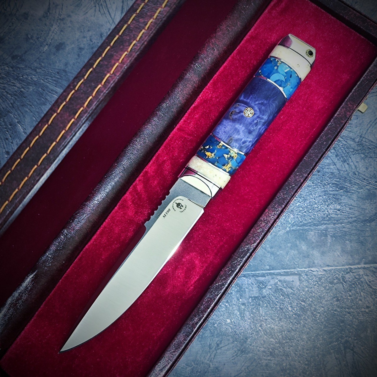 : Сталь M390 Твёрдость 64 HRC Рукоять карельская берёза, киринит, дюраль Больстер дюраль Общая длина 275 мм Длина клинка 145 мм Длина рукояти 130 мм Ширина клинка 29 мм Толщина клинка 3,4-3,5 мм Монтаж сквозной Футляр в комплекте (возможна покупка без футляра — с кожаными ножнами; цену уточняйте у менеджера). 🔥 Финский нож, изготовленный из высококачественной порошковой стали M390, обладает впечатляющей твёрдостью 64 HRC, что обеспечивает его долговечность и исключительные режущие качества. Сталь M390 известна своей устойчивостью к коррозии и отличной способностью удерживать заточку, что делает этот нож идеальным выбором как для профессиональных, так и для любительских задач. Рукоять ножа выполнена из комбинации стабилизированной карельской берёзы, киринита и дюраля, что не только придаёт изделию эстетически привлекательный вид, но и обеспечивает надёжный захват и комфорт в использовании. 🏷️ 24 000₽ 👉 Заказать по ссылке: t.me/matbel7