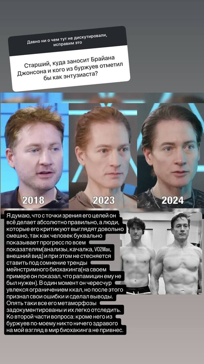Можно по разному относится к человеку, который захотел достичь бессмертия. И даже если 99% того что он делает -- это безумие, то оставшийся 1% знаний может помочь большому количеству людей во всем мире. Читать протокол Брайана →→ https://protocol.bryanjohnson.com/ Я поделюсь всем, чему мы с моей командой научились за последние несколько лет, потратив миллионы долларов на исследования, эксперименты и измерения. Мы совершили ошибки за вас. А я выделю то, что меня сильно заинтересовало 📌 Сон — это лучшее в мире средство для повышения работоспособности. Получайте свою дозу каждую ночь // обратите внимание на частоту сердечных сокращений (ЧСС). Чем она ниже, тем лучше. Тревога, стресс, навязчивые размышления могут дать +5+25! дополнительных ударов в минуту 📌 Физические упражнения – 6 часов в неделю идеально // Включайте силовые тренировки, кардио, упражнения на гибкость и баланс. Если это невозможно, даже 20 минут в день будет отлично. 📌 Выработайте привычку заниматься спортом. Дел