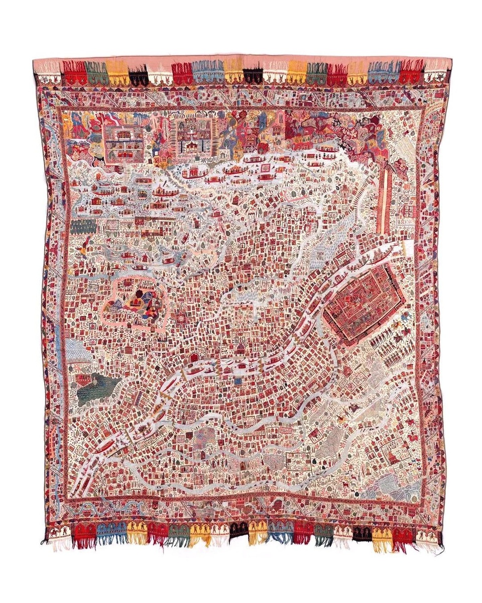 Прям так, да. На фото от Kashmirlife показана шаль 1870-х гг. работы неизвестного мастера. Она создавалась не для носки, а как произведение искусства. На шали подробно запечатлен ныне спорный регион Кашмир, родина кашемира — теплой ткани из пуха (подшерстка) высокогорных кашмирских коз.