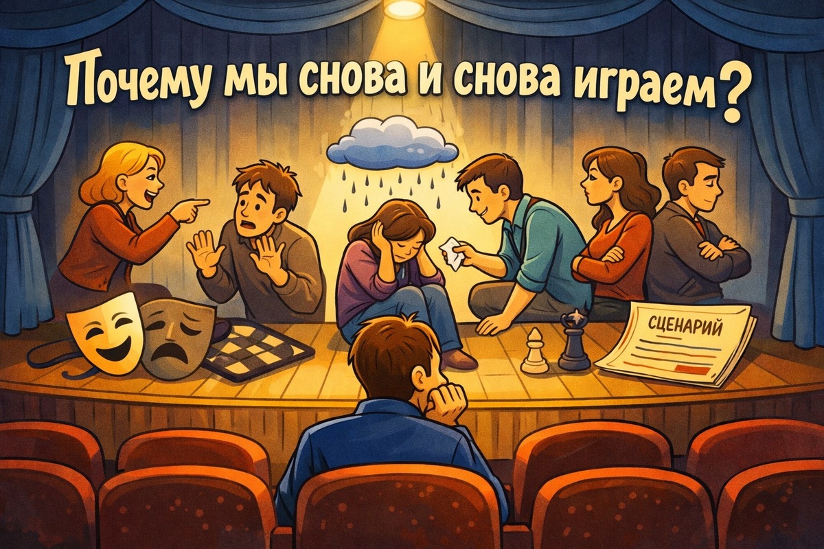 Он знает его наизусть. Там есть роли. Реплики. Финал. Эрик Берн называл это играми — повторяющимися психологическими действиями с предсказуемым исходом. Мы входим в них почти автоматически. Не потому что глупы. А потому что так безопаснее. Игра — это способ быть рядом, не рискуя быть настоящим. Можно пожаловаться, но не меняться. Можно обвинить, но не брать ответственность. Можно страдать, но остаться правым. Взрослая позиция пугает. В ней нельзя спрятаться за роль «жертвы» или «спасателя». Там нужно говорить прямо: мне больно, мне важно, я злюсь. И потому мы снова начинаем игру. С тем же человеком. Или с другим. Сюжет меняется, но смысл остаётся. Пока не появляется вопрос: А что я на самом деле получаю, когда в это вхожу? #Эрик_Берн