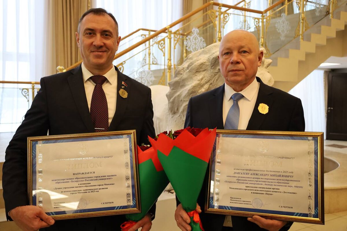💪Во время торжественного собрания представителей трудовых коллективов по итогам социально-экономического развития города Могилева за 2025 год председатель Могилевского городского исполнительного комитета Сергей Валерьевич Чертков выступил с докладом о результатах, которых добился город в Год благоустройства (2025). «Главное богатство Могилева — это люди. Именно их труд, идеи и самоотдача позволяют городу развиваться и уверенно двигаться вперед. Вместе мы сможем сделать многое и достойно противостоять любым вызовам»,– подчеркнул мэр города. ▶️На мероприятии Сергей Чертков вручил лучшим специальную премию Могилевского горисполкома «Достижение» с занесением на Доску почета города. Из 19 могилевчан, проявивших себя в различных сферах деятельности, в номинации «Наука» премию получил Александр Довгалёв, доктор технических наук, доцент, начальник регионального центра тестирования Белорусско‑Российского университета. ▶️Поздравляем нашего коллегу! Его вклад в развитие науки был высоко оцене