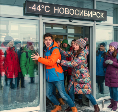 — Нет! Я не выйду! Там не атмосфера, там вакуум! — Рами уперся руками и ногами в дверной проем аэропорта Толмачево, блокируя выход пассажирам с рейса «Дубай — Новосибирск». — Варя, посмотри на табло! Минус сорок четыре! При такой температуре металл крошится, а я живой человек!