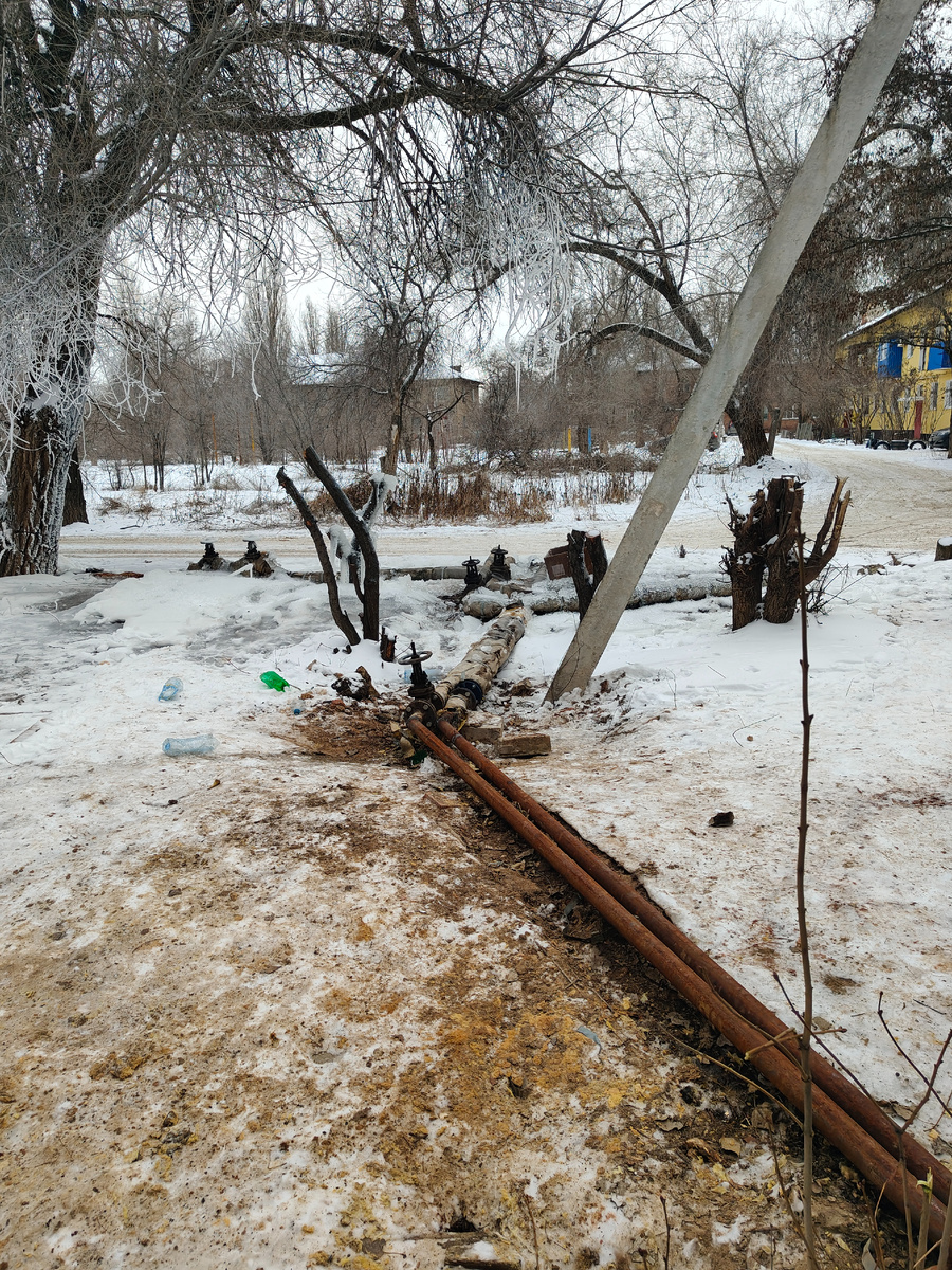 Ну, вроде бы и должен быть завершающий штрих этой истории, и можно было «торжественно перерезать ленточку» и спокойно дать тепло жильцам дома. Но снова квест развернулся в ненужную сторону, и после некоторых мытарств слесарей тепла на ночь снова не было. Они ушли, сделав перемычку между прямой и обратной трубой, чтобы снова не разморозить трубу от магистрали (там где-то метров 30-35). И тишина... Дозвониться до них по телефону было нереально, так как никто не брал трубки. Диспетчер по ЖКХ Красноармейского района тоже ничего внятного не сказала, типа у нас информации по этому вопросу нет, звоните в вашу аварийку. Но там просто тишина на звонки. Итак, уже прошла неделя (с пятницы до пятницы), тепло поступает по трубам к дому и, пройдя по перемычке, уходит обратно в магистраль (кстати, трубы не изолировали ещё, и теперь от них идёт пар, видимо, греют улицу, а погода всё ещё холодная, хотя и температура поднялась до минус 10).