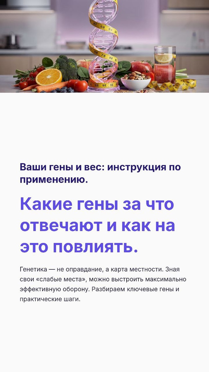 😁🥹🤐🥹😐🥲🤔😀 Ну раз уж в комментариях упомянули генетику, то сегодня о ней. Часто на приеме я слышу: «У меня вся семья полная, это генетика, ничего не поделаешь». И в этом есть доля правды, но лишь доля. 😵💫Поверьте😵💫Гены — это не приговор, а сложная стартовая позиция. Они задают «правила игры», но не определяют ее результат. 🔴Гены не кодируют лишние килограммы. Они влияют на биохимические процессы, которые опосредованно влияют на вес: 😃Скорость базового метаболизма: Насколько эффективно ваше тело сжигает калории в состоянии покоя. 😄Тип метаболизма жиров и углеводов: Кому-то легче худеть на низкоуглеводной диете, а кому-то — на низкожировой. 😔Регуляция аппетита и насыщения: Чувствительность к гормонам лептину («гормону сытости») и грелину («гормону голода»). P.S. кстати, обо мне: у меня очень нечувствительные рецепторы к лептину и я первый кандидат на переедание. 🫨Склонность к «заеданию» стресса: Влияние на дофаминовую и серотониновую системы, которые связаны с пол