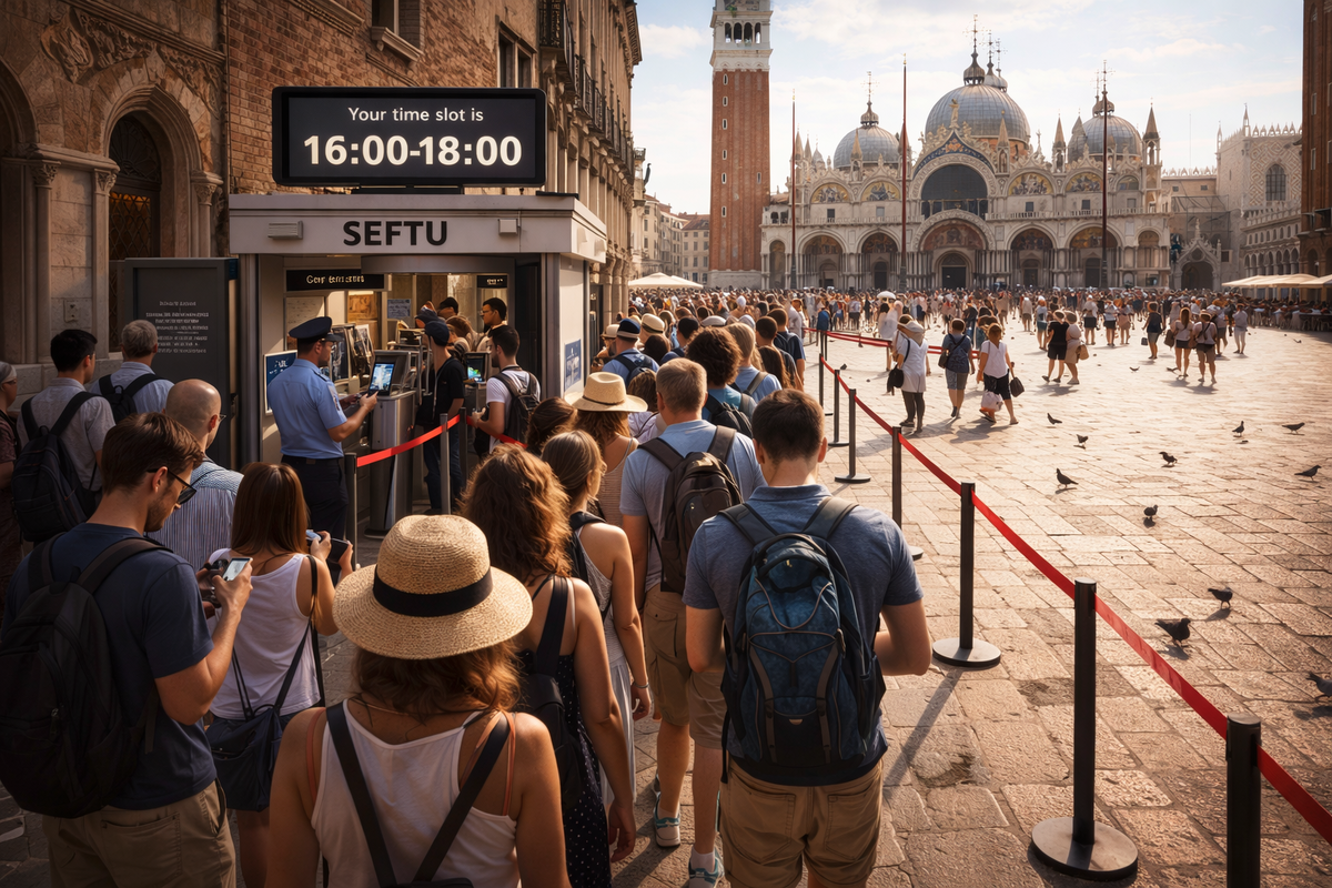 Ограничение по количеству туристов оказалось недостаточным. Люди всё равно скапливались в одни и те же часы. Временные слоты позволяют растянуть поток, не снижая общего числа посетителей. Город не теряет деньги, но снижает давление на инфраструктуру в конкретные моменты.