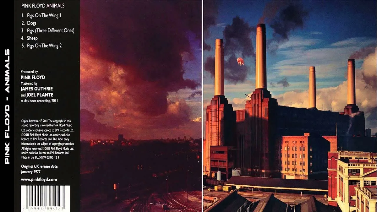 ...но речь, как водится, не об этом. Оформлением конверта пластинки занимался Сторм Торгерсон, постоянный художник группы, а идею обложки, по официальной версии, придумал сам Уотерс. Знаменитая электростанция Баттерси — британская достопримечательность, однако в небе между её трубами была изображена здоровенная надувная свинья с картинки в российской газете, опубликованной чуть ли не веком раньше концептуального альбома группы Pink Floyd, тексты которого вскрывали социально-политические язвы бри