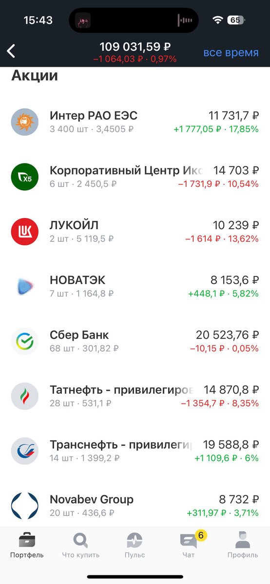 День #292 💰 Всем привет! Вот и наступили долгожданные выходные, в зимний период как-то особенно жду выходные, поэтому настроение сразу отличное, чего и вам желаю! Пополнил свой счет на 450 руб., чем займусь завтра и продолжу ближайшие 10 лет. В понедельник планирую приобрести еще одну акцию Новатэка 🔋 или возьму сразу несколько штук Сбербанка 🏦 Буду что-то покупать в любом случае, а значит увеличу свой пассивный доход на этот год, кстати, время проверить как изменился прогнозируемый дивидендный поток за эту неделю: 31.01.2026 - 13 252 руб/год или 1 104 руб/мес 07.02.2026 - 13 616 руб/год или 1 134 руб/мес Здесь у меня все стабильно, от недели к неделе будущий пассивный доход продолжает увеличиваться за счет пополнений и покупок качественных дивидендных акций, а с увеличением пассивного дохода - будет расти размер реинвестиций, что позволит мне расти еще быстрее. Что может быть приятнее, чем видеть плоды своего труда ?💪 Всем желаю роста своего финансового здоровья и отличных выход