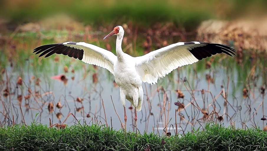 Стерх (Grus leucogeranus): Также известный как белый журавль, этот вид является одним из самых редких и находится под угрозой исчезновения. Его ослепительно белое оперение и красная "шапочка" на голове делают его поистине величественным. Стерхи гнездятся в арктических регионах России и мигрируют в Китай и Иран на зимовку.