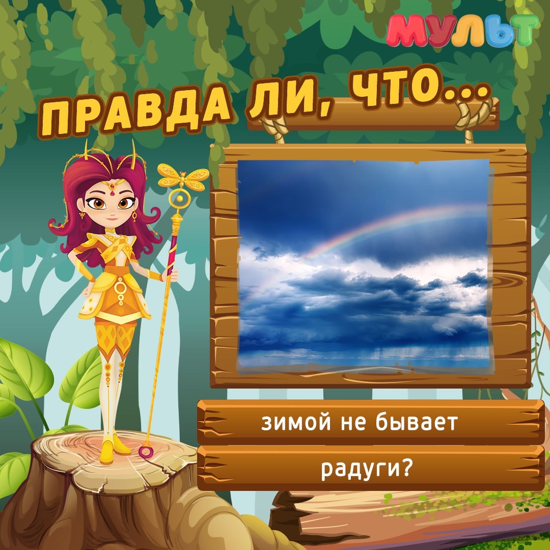 ! Действительно, лошади могут распознавать позитивные и отрицательные эмоции по мимике человека. Лошадям показывали фотографии с разными эмоциями людей, и животные негативно реагировали на фото с сердитым выражением лица. А у нас на очереди новый вопрос: ❓ Правда ли, что зимой не бывает радуги? Пишите свою версию, позже мы опубликуем правильный ответ. 👇 #правдали_мульт
