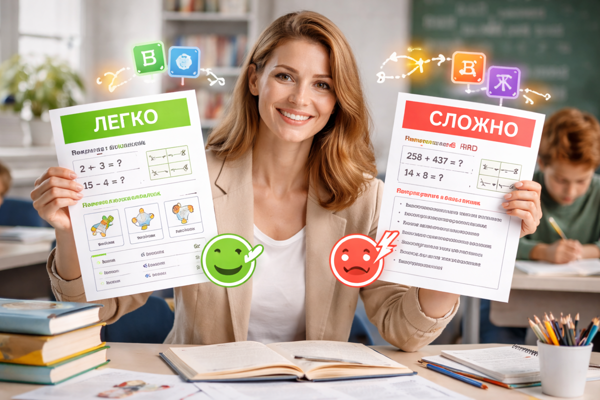 👉 но финальную сложность всегда регулирует учитель. Используем модель 3 уровней: Для учеников, которым нужна опора: Для большинства класса: Для сильных учеников: Важно: ни один уровень не должен выглядеть «стыдным». Уровень A (базовый)