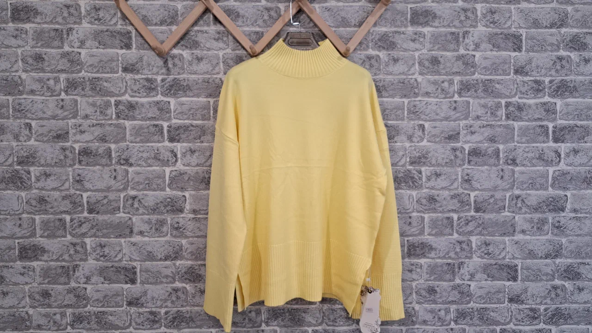 И лишь несколько позиций я вам сегодня покажу. Вот такой солнечный джемпер я приобрела себе ))) Была распродажа у одного из продавцов по 1000 рублей, я решила, что мне тоже надо и купила именно из-за цвета, сказывается тоска по солнышку. Теперь думаю, а с чем я его буду носить? Нужно примерить его, пока даже некогда было это сделать. Замеры: ПОГ 58, длина 54 см намерила.