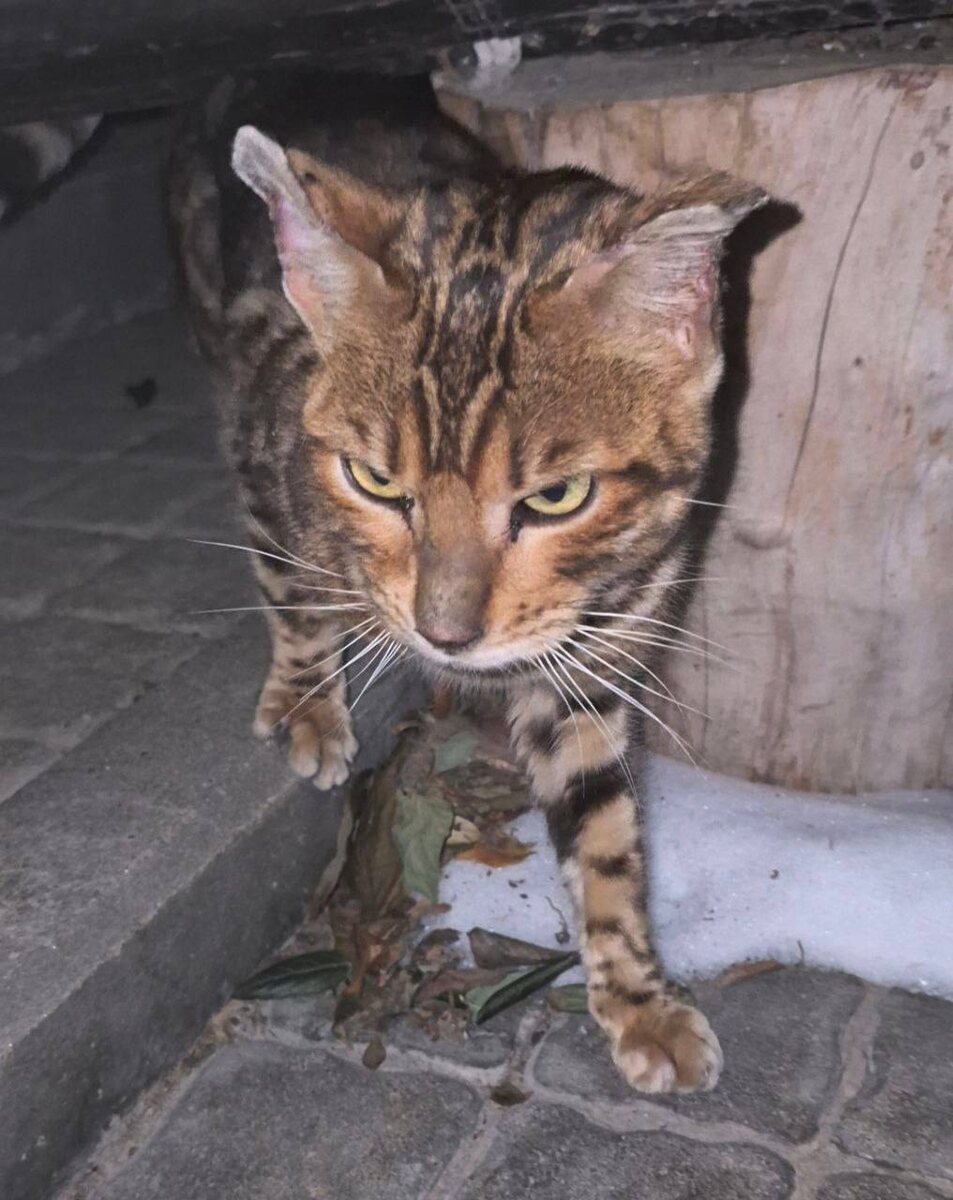 Прибилась во двор кошка - посёлок Берёзовая Роща Кагальницкий район. На вид порода Бенгальская. Голос тоже характерный -очень громкий. Уши обморожены. Ищем старых или новых хозяев.