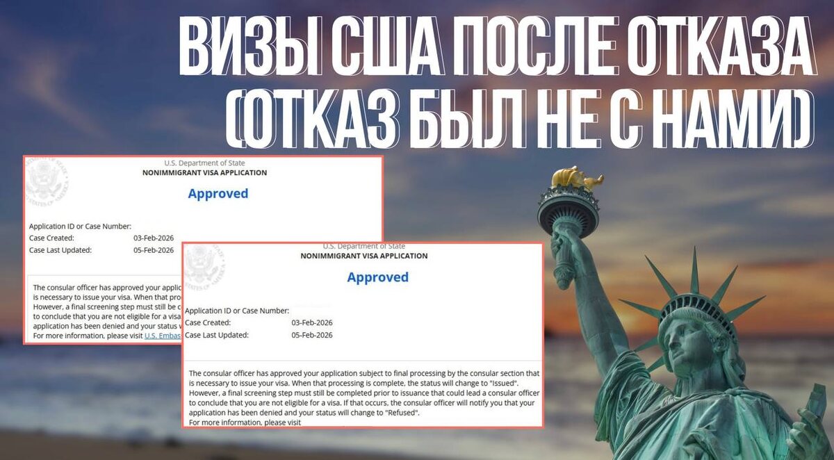 🇺🇸 5 февраля: одобрены повторные туристические визы гражданам РФ после отказа. Кейс: супружеская пара. Супруга работает в сфере образования, супруг – судья отставке. В США проживает сестра-гражданка, все поездки к ней длились не более месяца. В 2023 году получили отказ. Спонсируют поездку самостоятельно. В РФ остаются дочь, работа, недвижимость. За последние 5 лет посещено 4 страны. Собеседование проходили на русском языке. Вопросы консула: – Кем работаете? – Когда в последний раз были в США? После ответов на вопросы консул одобрил визы США. Оформить визу США «под ключ» ⬅️ Записаться на консультацию ⬅️ #кейс #виза_сша