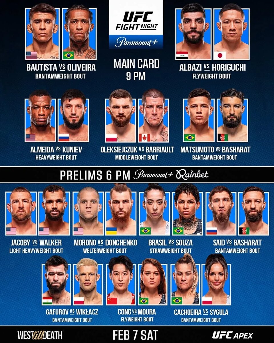 ⚡Кард предстоящего турнира UFC