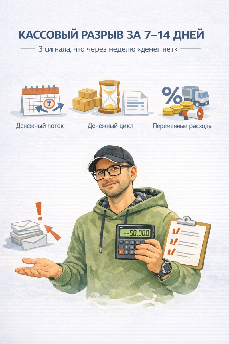 Хорошая новость: кассовый разрыв почти всегда виден заранее. И часто достаточно трёх цифр, чтобы поймать его за 7–14 дней до удара.
