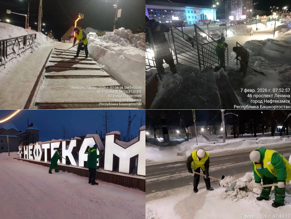02.2026. Первая смена МБУ «Служба чистоты и порядка». 1 уборка города: аллеи, переходы, остановки, общественные пространства, соц.объекты, парковки, очистка урн и т.д. 2 вывоз снега ул Ленина от ВТБ Самосвалы 6 ед Погрузчик 1 ед 3 мех очистка оз Светлое Амкадор Барсик 4 уширение тротуаров МТЗ отвал щетка 4 ед 5 мех очистка с уширением Ул Дюртюлинская Российская Молодежная Заки Валиди Грейдер МТЗ отвал щетка 6 мех очистка контейнерных площадок, частный сектор Погрузчик 1 ед 7 подсыпка ПСС КДМ 1 ед 👉 Подписаться на канал