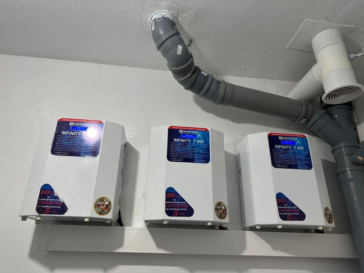 На стандартный ввод 15 кВт ставится 3 стабилизатора. Буду писать цену сразу за комплект из 3 штук. 💩Релейные - около 65-70 тысяч. 🗿электромеханические 100-105 тысяч 😍тиристорные - 145-150 с шагом переключения 16-18В и 170-175 тысяч с шагом переключения 6-7В. 🤔инверторные - 175 тысяч. Точность около 3В (самая высокая), но есть и минусы: пылесборник, счета за электричество на 4% больше. Монтажные работы обычно выходят в 22.000-35.000 с материалами. Для точного обсчёта надо хотя бы фотографии места установки, а в идеале выезд на место установки Иногда ставить стабы вообще бесполезно или даже вредно. Всё ещё сомневаетесь? Обращайтесь к специалистам: 8904-381-42-16 Дмитрий 8950-191-67-23 Михаил 8908-903-85-36 Владимир Компания Гарант-Энерго.